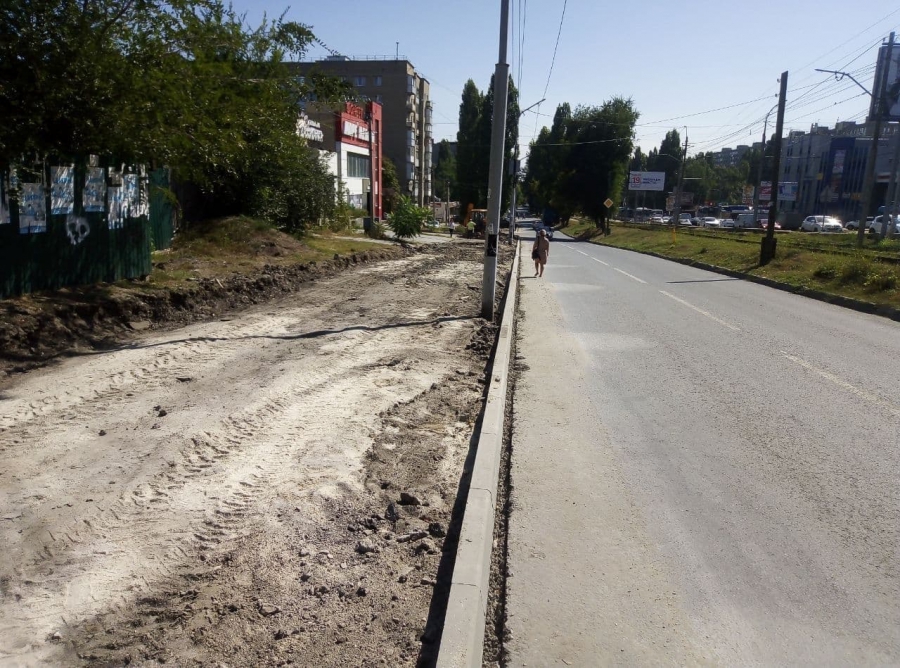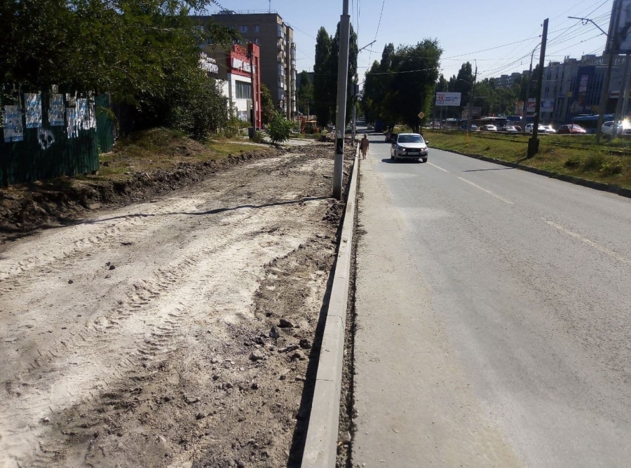 Пешеходы вынуждены идти по проезжей части из-за ремонта тротуара
