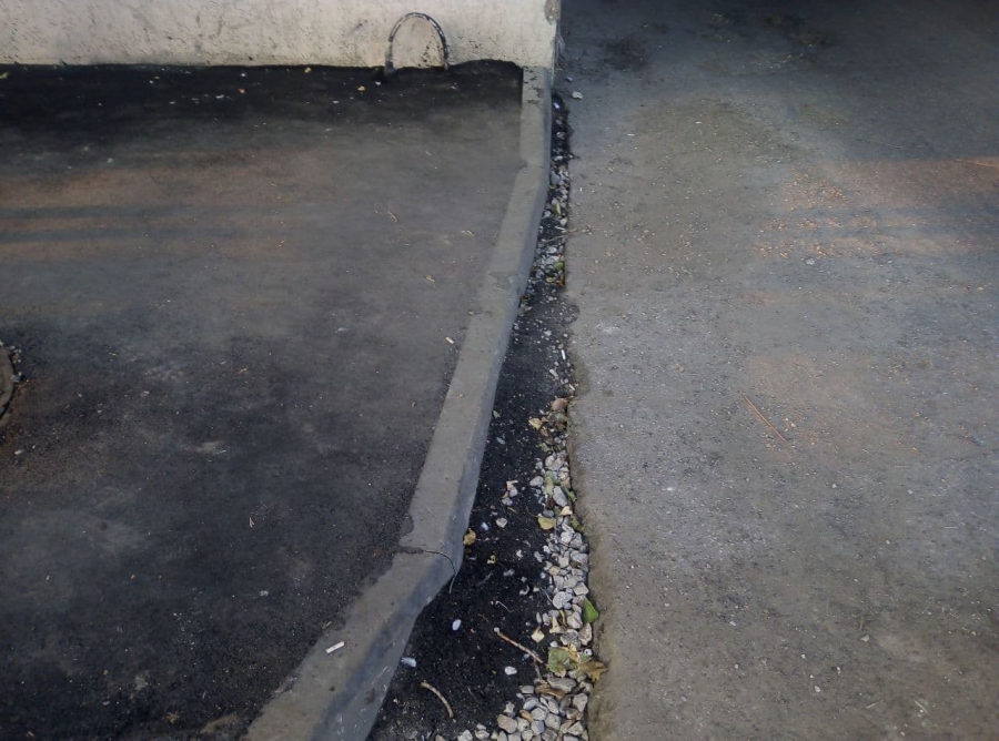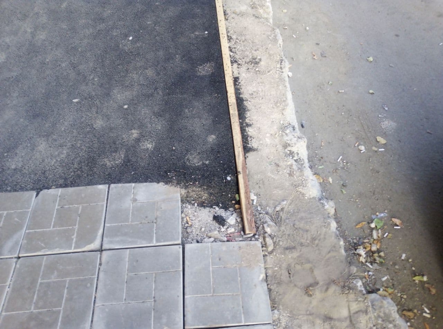 Также в процессе ремонта у дома №23 дорожники применили деревянные брусья как ограничитель границы нового тротуара, что в дальнейшем может привести к скорому разрушению кромки асфальта.