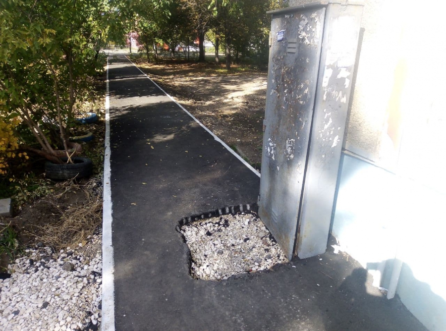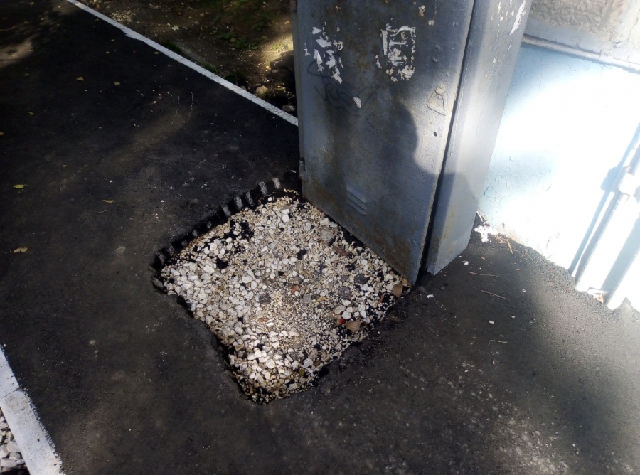 При ремонте тротуара в прошлом году на улице Аэропорт и в этом году при благоустройстве двора дома №10 по улице Высокой рабочие закатали в асфальт распределительные щиты. В результате этого, чтобы их открыть, пришлось демонтировать новое покрытие.
