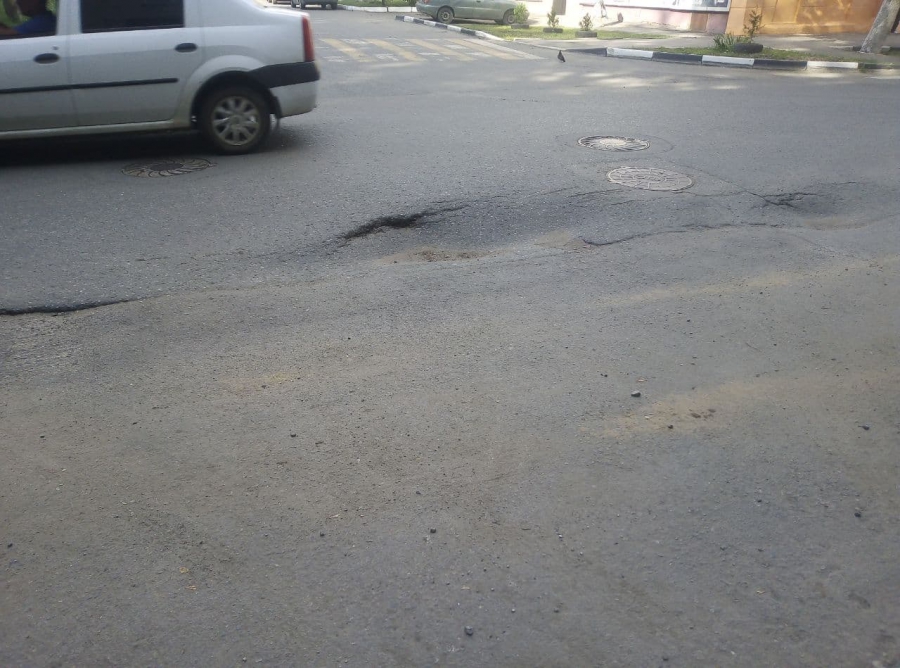В минувшем июне «Дорожный контроль» сообщал о глубокой просадке на улице Зарубина, на пересечении с Железнодорожной. За минувший месяц яма значительно увеличилась в размерах, грозя превратится в любой момент в провал.