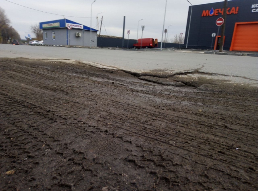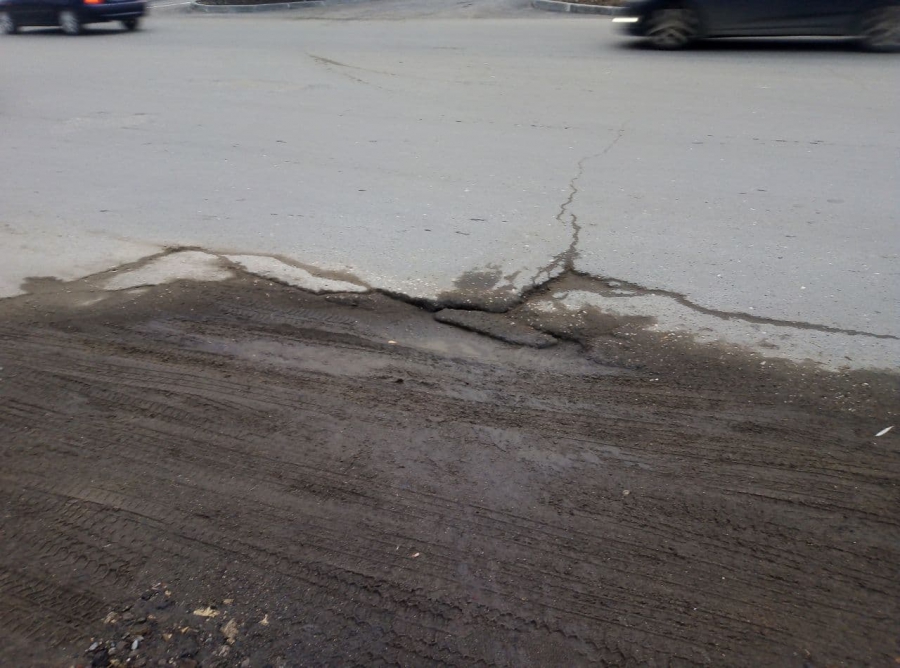 Яма появилась на восстановленном покрытии на месте вскрышных работ.