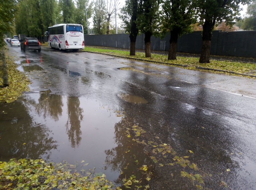 После дождя разрушения заполняются водой, что не позволяет водителям определить глубину и опасность ям. При движении по этой оживленной улице автолюбители вынуждены передвигаться на минимальной скорости или активно маневрировать, объезжая многочисленные препятствия.