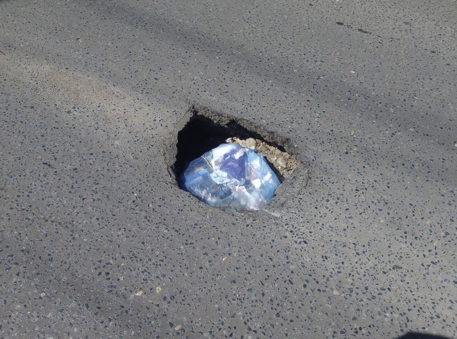 За минувшее время опасное препятствие не устранили и даже не обозначили. Единственным изменением стал пакет с мусором, которым заложили яму. Хотя безопасность проезда это не восстановило, но можно отметить креативность автолюбителей в попытках самостоятельно устранить разрушения.