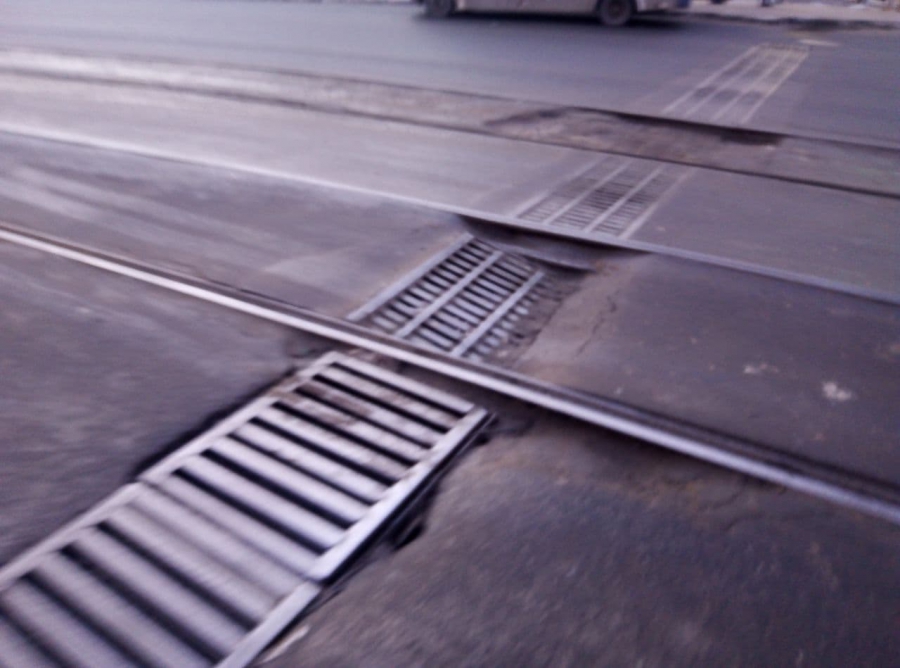 Соседние полосы минувшей весной приводили в нормативное состояние, но ливневку на путях движения трамвай не поправляли.