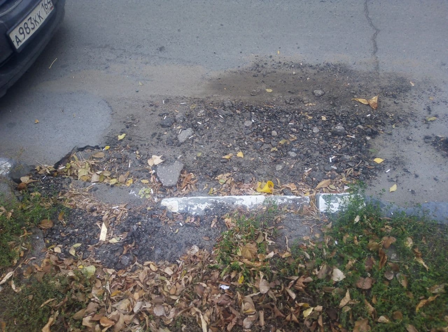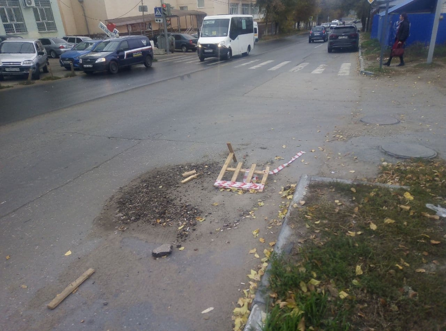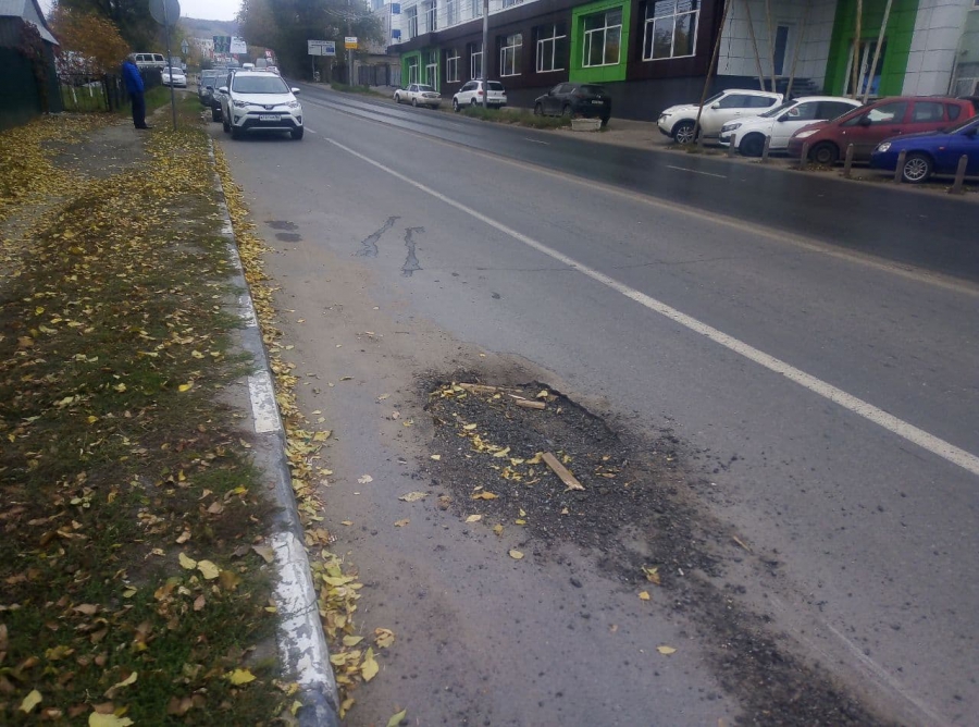 На участке улицы Технической от проспекта 50 лет Октября до Мельничной образовалось три провала по крайней правой полосе дороги.