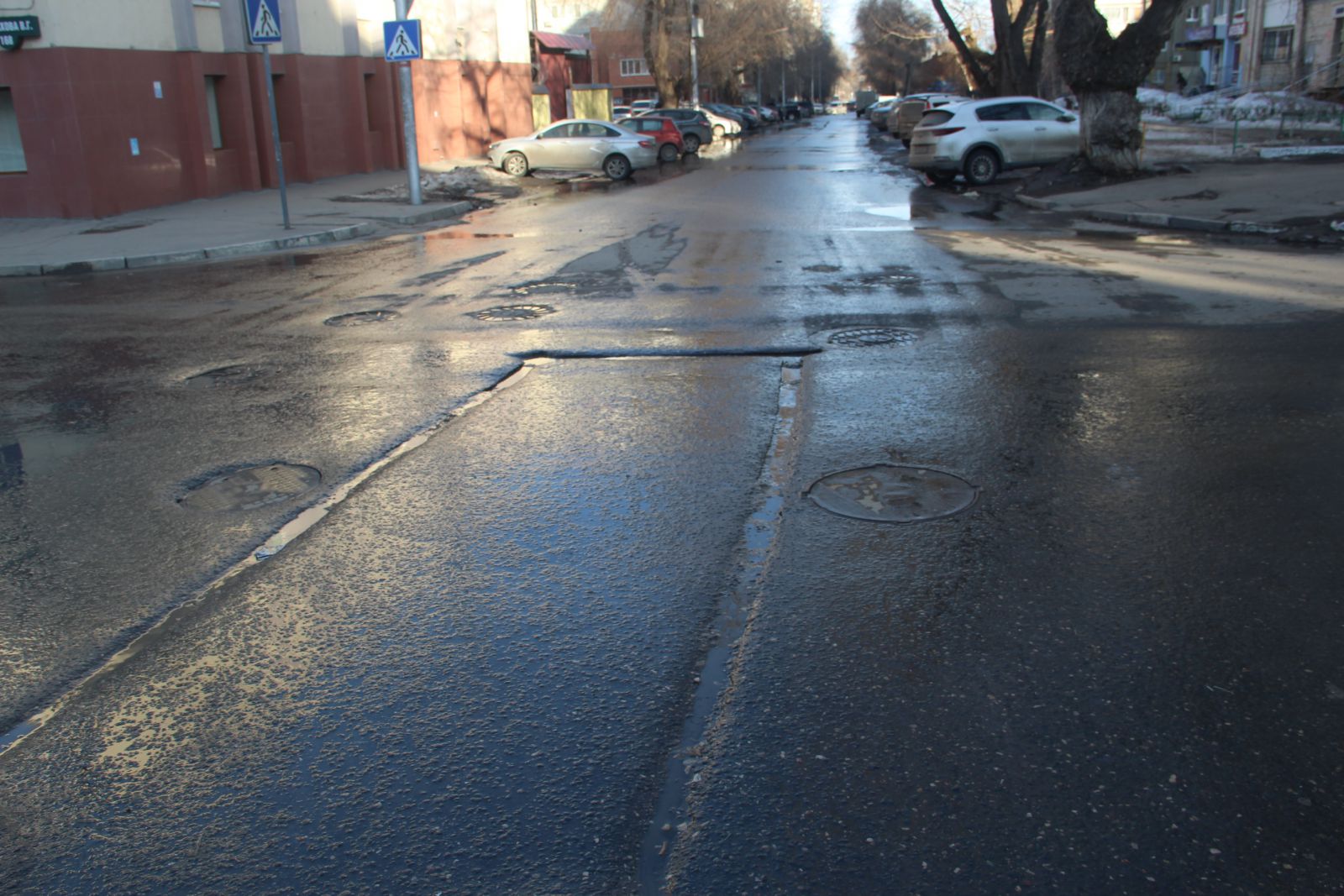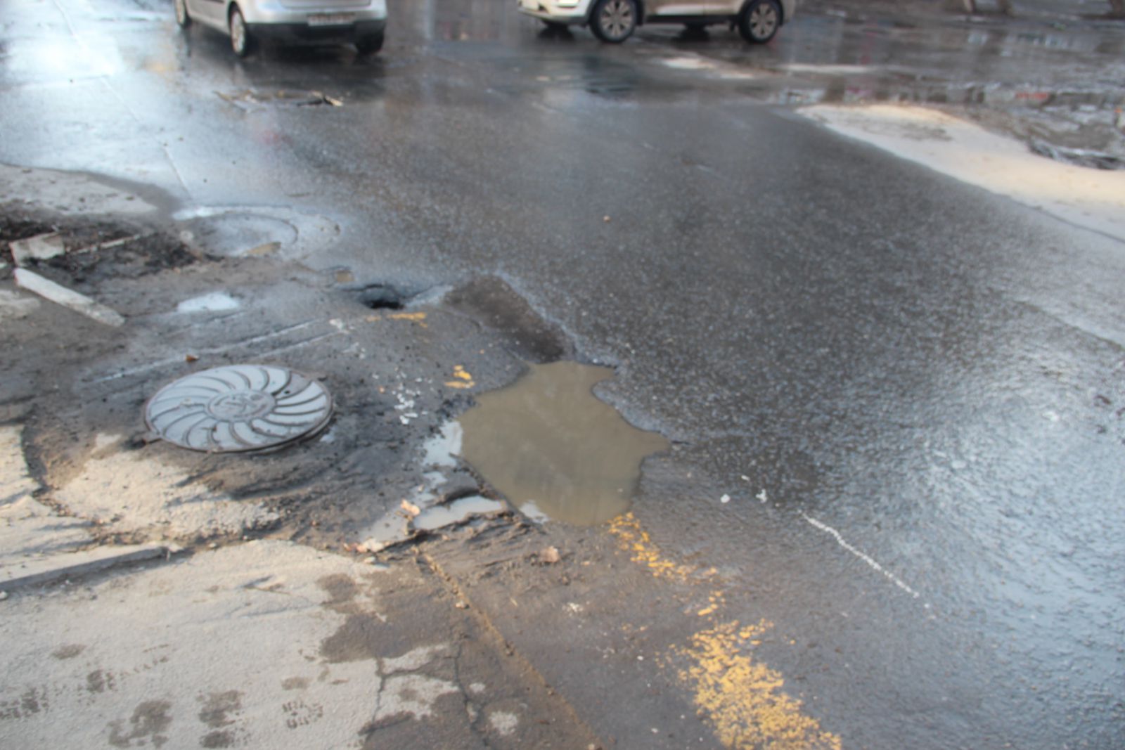 Обнаружились разрушения и на улице Кутякова (ремонт 2017 и 2018 гг). несмотря на старания дорожников, подлатывающих улицу, образовалась выбоина на участке между Чапаева и Вольской, а также глубокая просадка рядом с пересечением с улицей Астраханской. В ненормативном состоянии на этой дороге пребывают и смотровые колодцы, рядом с которыми разрушается дорожное покрытие.