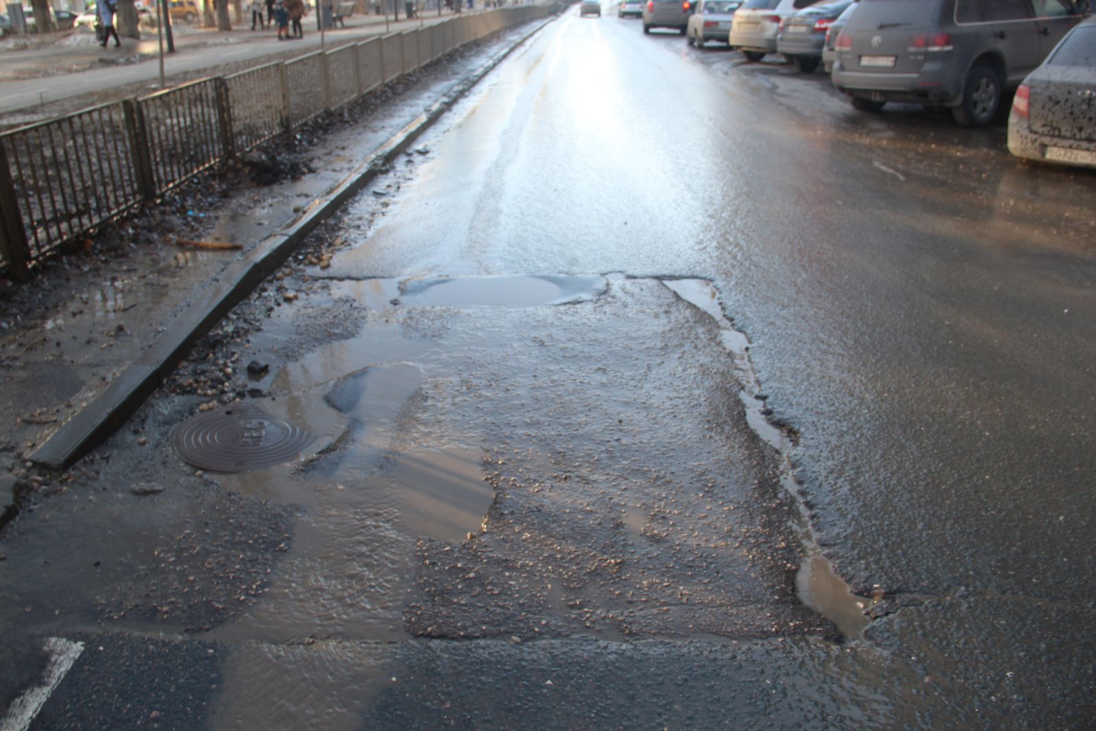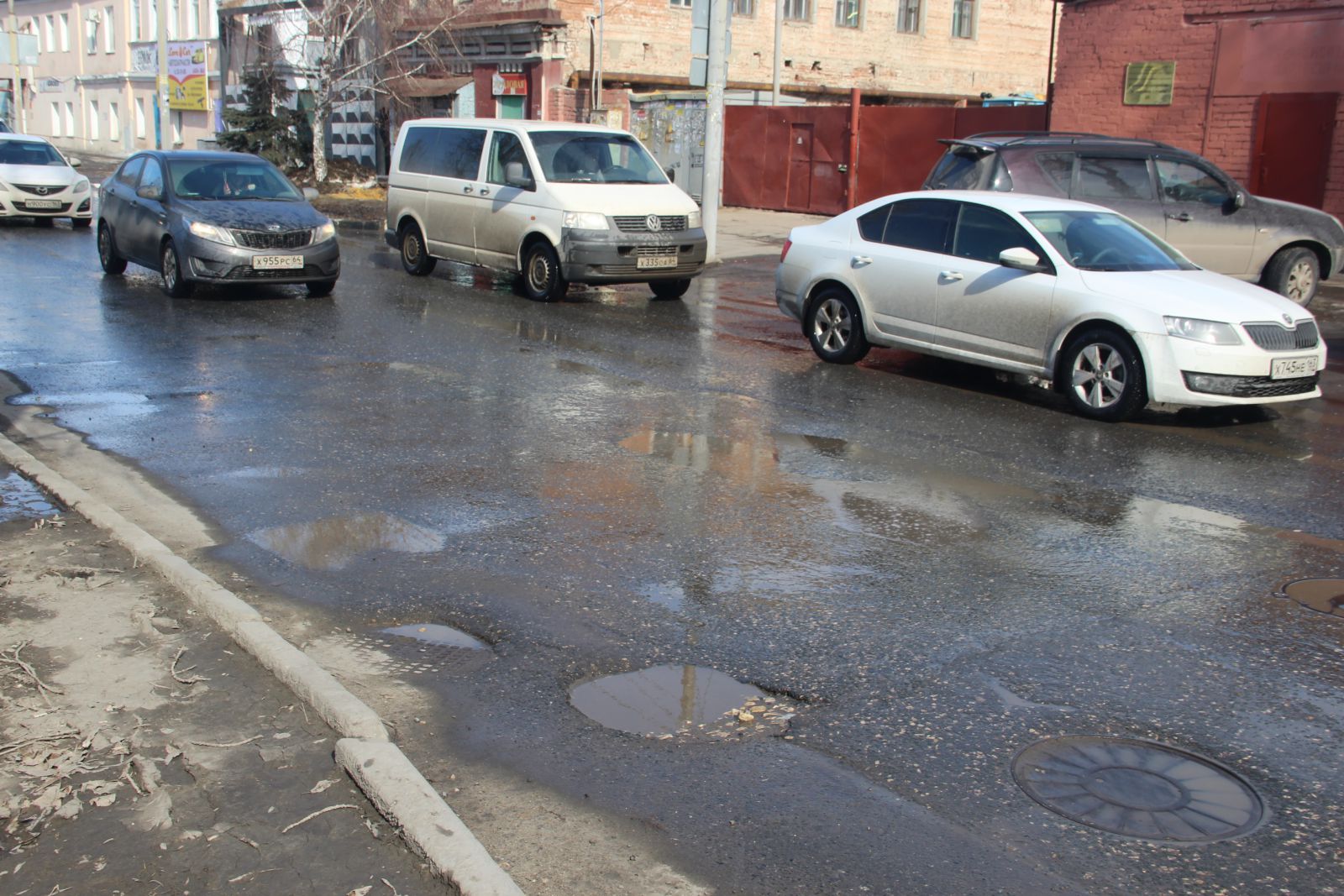Не порадовало в ходе инспекции состоянии улицы Большой Казачьей (ремонт 2016), и если выбоины дорожники устранили, то справиться с колейностью им не удалось, в некоторых местах верхний слой покрытия уже полностью истерся. Также ямочный ремонт обошел стороной и участок между Степана Разина и Аткарской. Отдельно на этой оживленной улице стоит отметить опасный люк на пересечении с Университетской, вокруг которого образовалась глубокая яма. Смотровой колодец перекрывает по полосе на каждой их этих улиц, угрожая безопасности проезда.