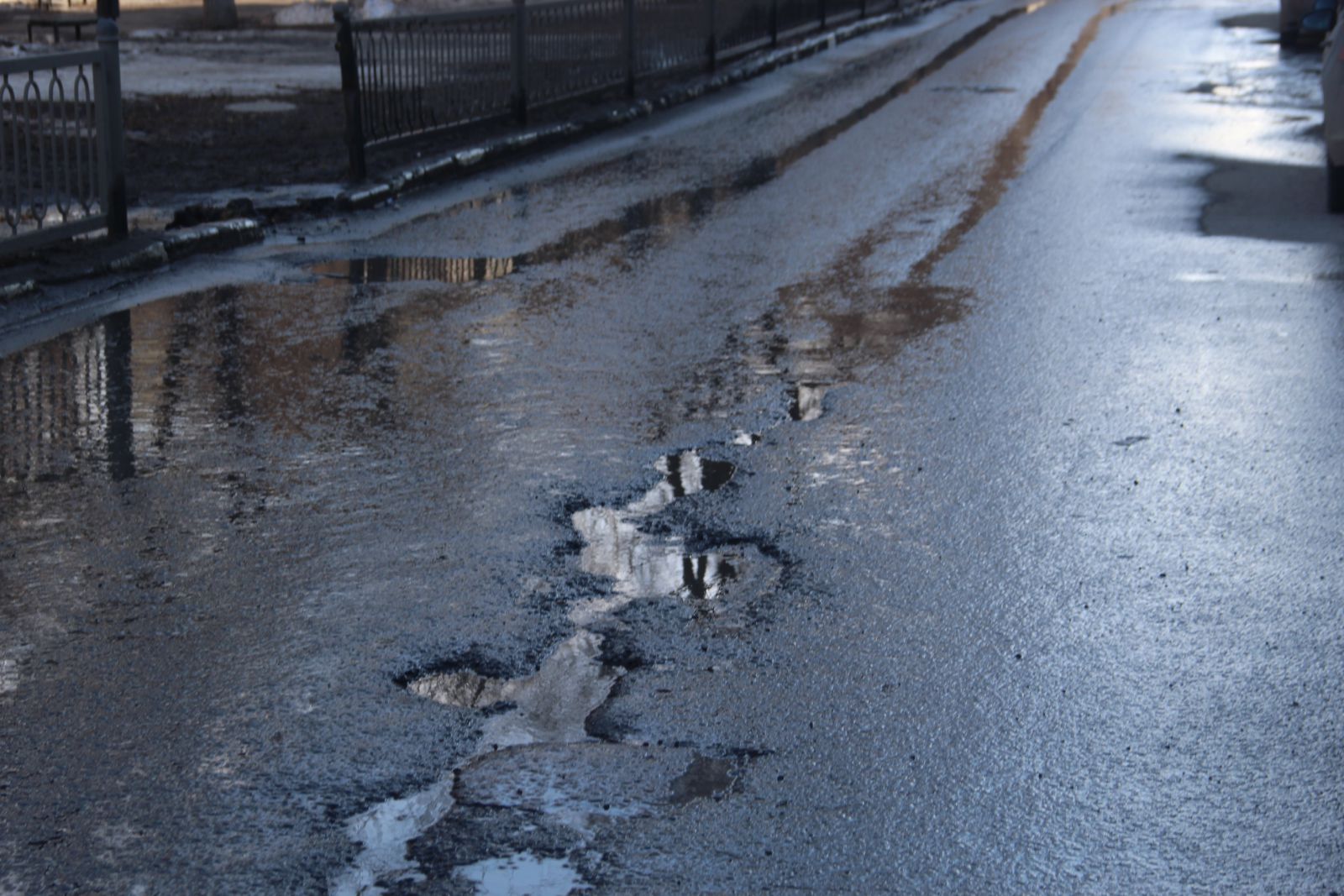 Многочисленными выбоинами усеян путь автолюбителей от улицы Жуковского до улицы Плодородной (дорога по Депутатской, Бирюзова и Планерной). Справиться с ними ямочным ремонтом не удалось, и рядом с латками появляются новые разрушения. Обратный путь от Молочки в сторону СХИ также не обходится без дефектов.