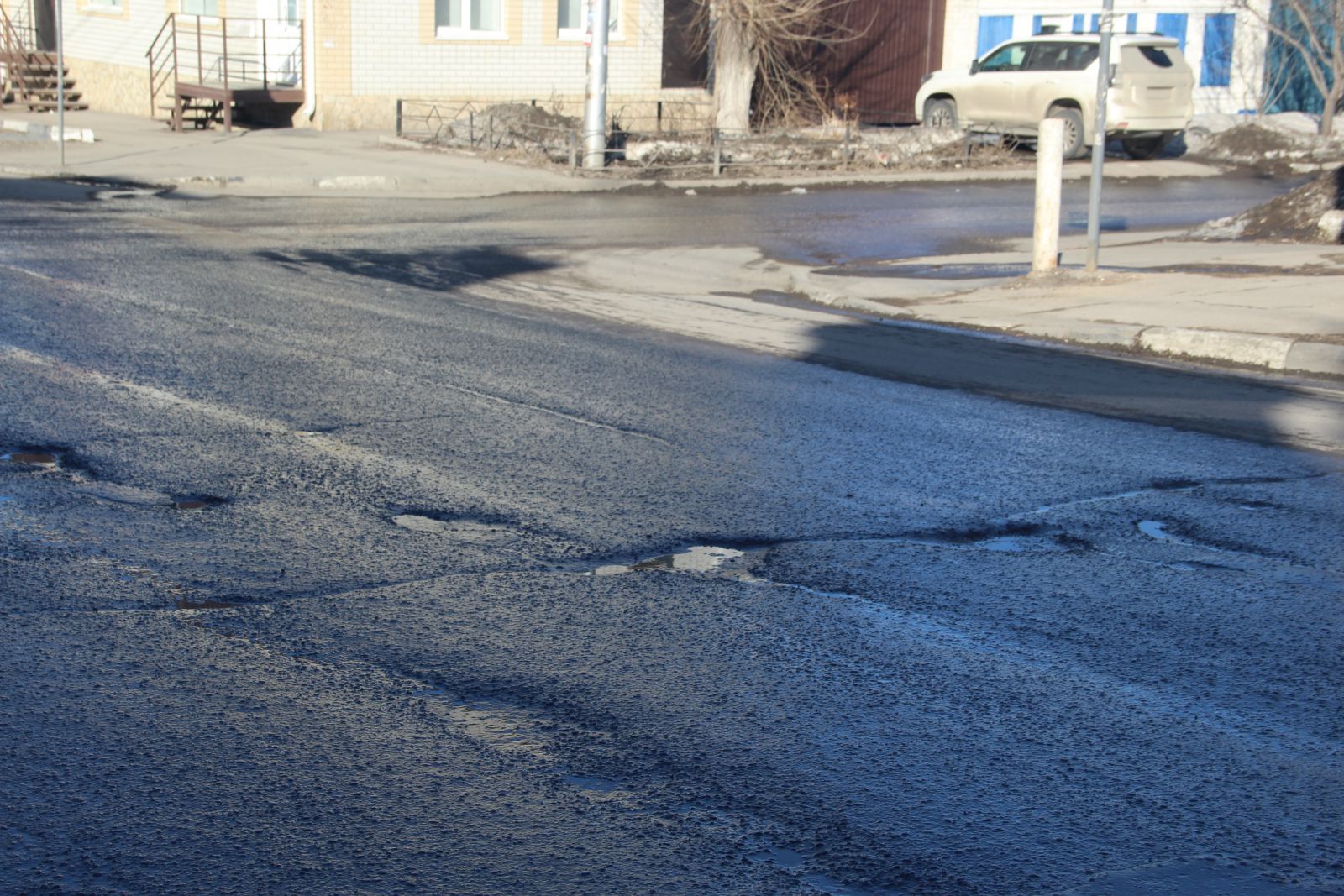 Особенно заметны разрушения у дома №156, где ямы начали угрожать безопасности проезда.