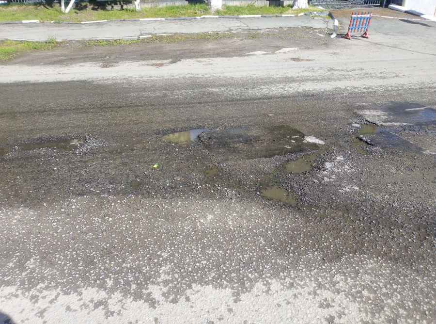 Наиболее проблемный участок находится перед ливневкой рядом с улицей Соколовой, в этом месте уже проводили ямочный ремонт, но и от него уже почти не осталось следа.