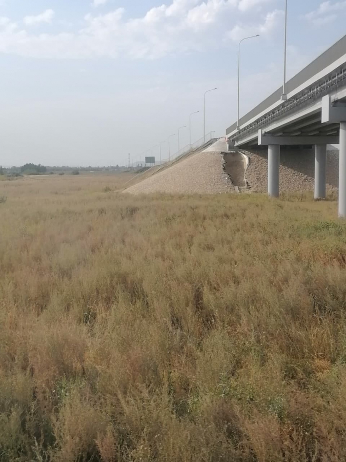 Разрушается насыпь на путепроводе к аэропорту Гагарин