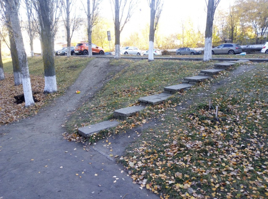 Первые разрушения были зафиксированы в начале минувшего лета: в ненормативное состояние пришла устроенная лестница, ведущая от проезжей части к тротуару по улице Мамонтовой.
