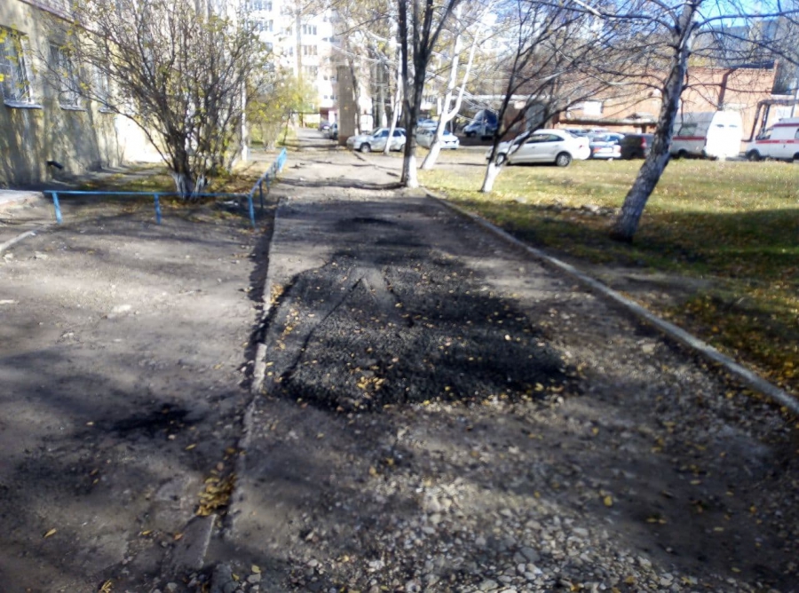 В прошлом году были отремонтированы пешеходные дорожки по улицам Мамонтовой и 2-й Электронной вокруг саратовской городской межрайонной поликлиники №1.