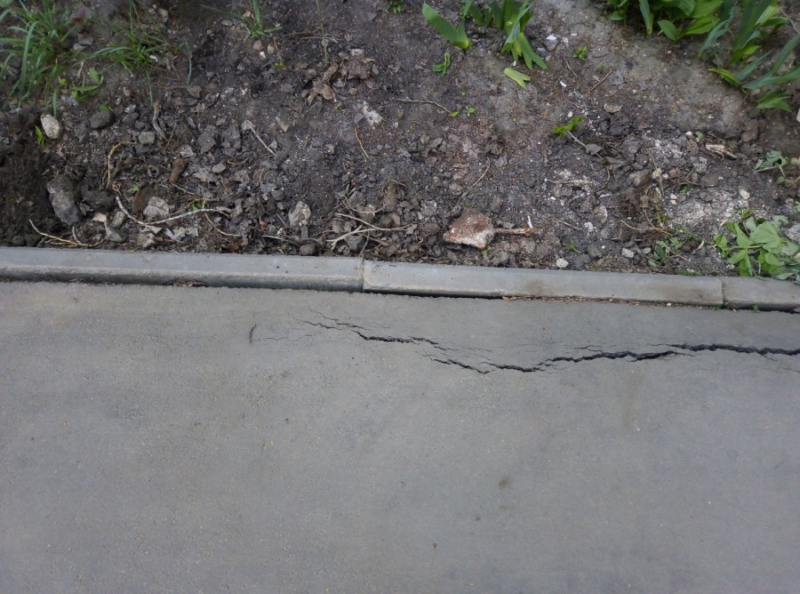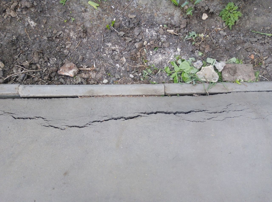 За прошедшее время на нем появился ряд существенных разрушений. На пересечении с улицей Рабочей образовался выпор на покрытии со стороны проезжей части, кроме того на этом участке повреждения затронули и бортовой камень. На отрезке между Рабочей и Слонова на пешеходной зоне образовалось несколько просадок и трещин на асфальте. Но наиболее опасное разрушение находится на пересечении с улицей Вавилова, где перед пешеходным переходом образовался провал.