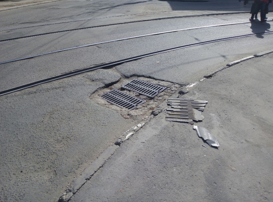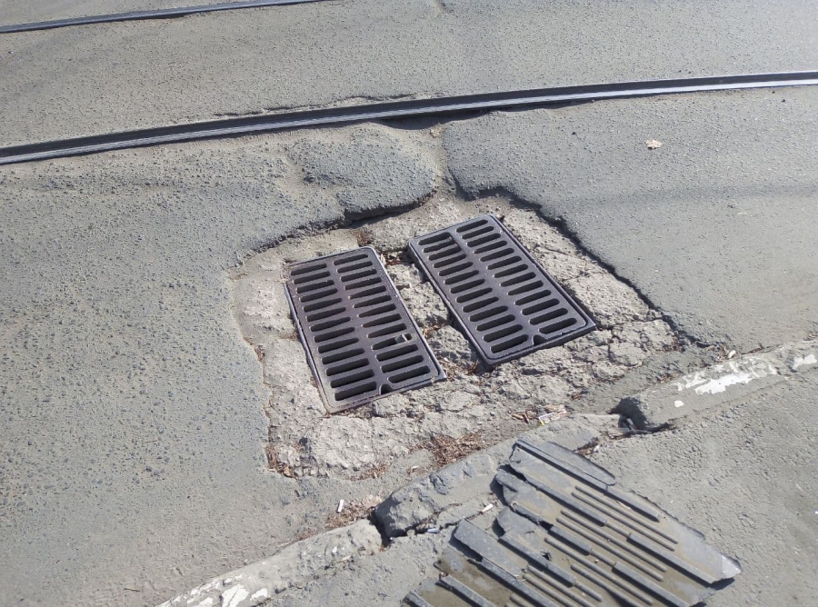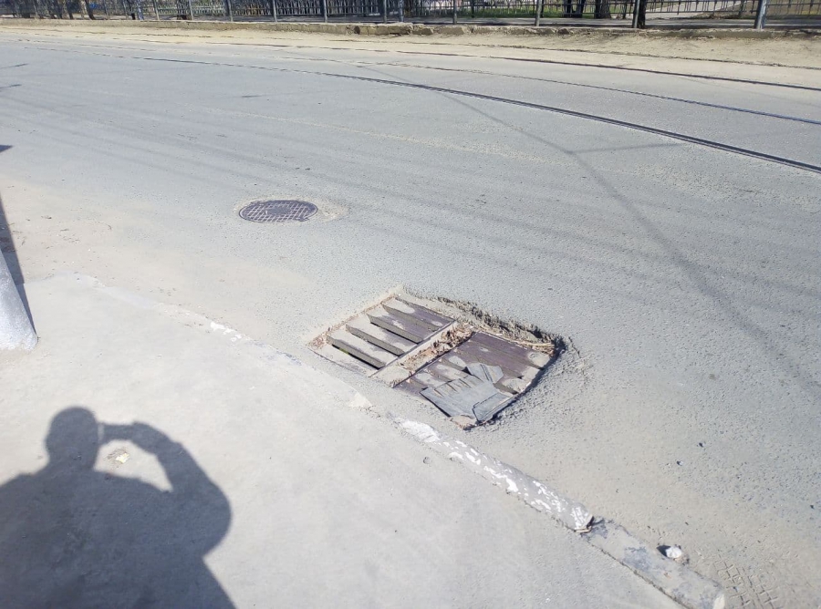 На улице Астраханской, рядом с Детским парком, разрушаются дождеприемники. Две ливневки, расположенные по крайней правой полосе, значительно просели, создавая угрозу для безопасности движения автотранспорта.