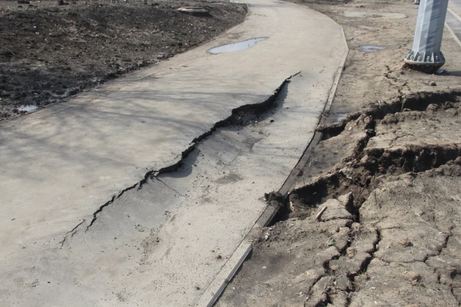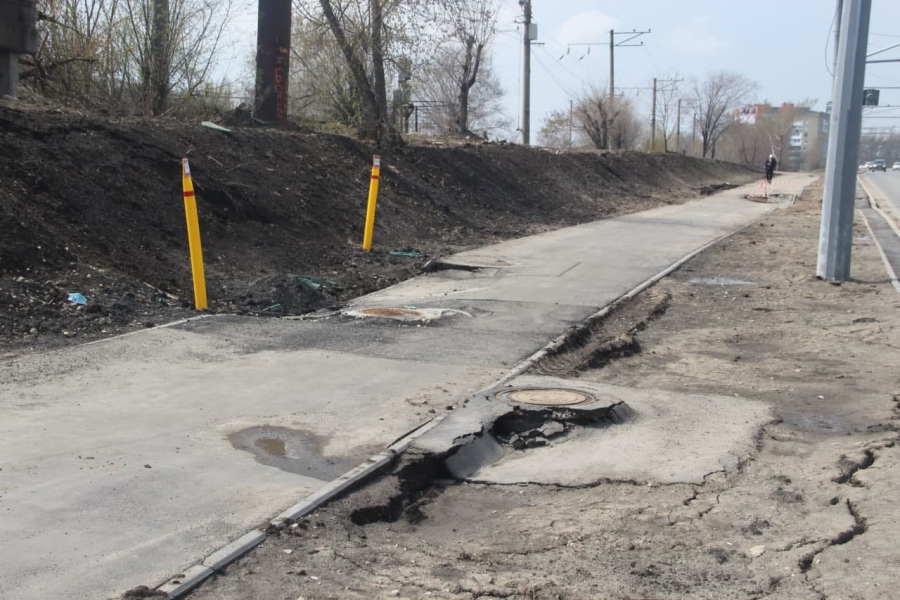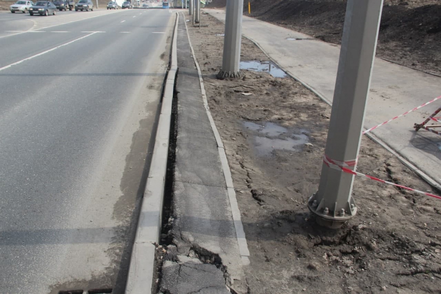 Работы по их устройству проводились прошлой осенью в рамках общей реконструкции Трофимовского моста. После зимы грунт дал усадку, что и привело к разрушению тротуаров. Возникает вопрос, как такой естественный процесс не учли при планировании и строительстве Трофимовского моста, и сколько еще пойдет времени, пока усадка закончится и разрушения прекратятся.