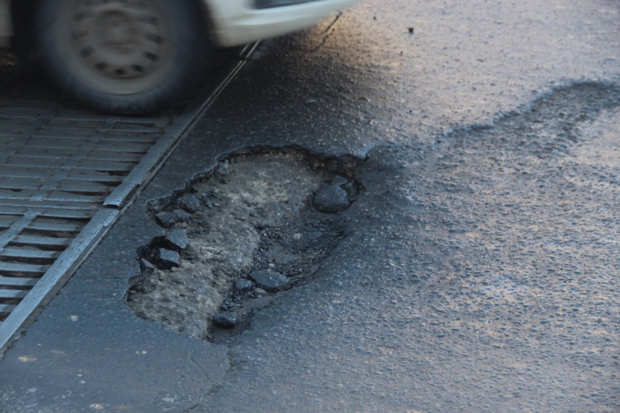 На улице Танкистов, перед пересечением с улицей Высокой, образовалась глубокая яма, угрожающая безопасности движения автотранспорта.