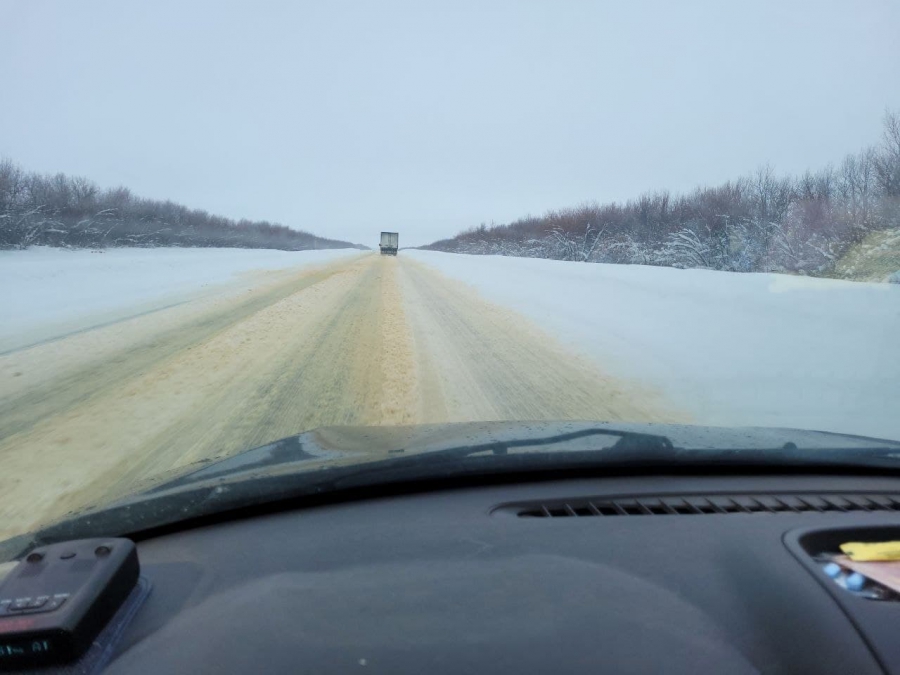 Как сообщил автолюбитель, из-за снежной колейности маневры обгона затруднены и за фурами скапливается много машин. При этом на присланных фотографиях видно, что дорогу обрабатывают песко-соляной смесью, но уборка снега проводится не во всю ширину проезжей части.