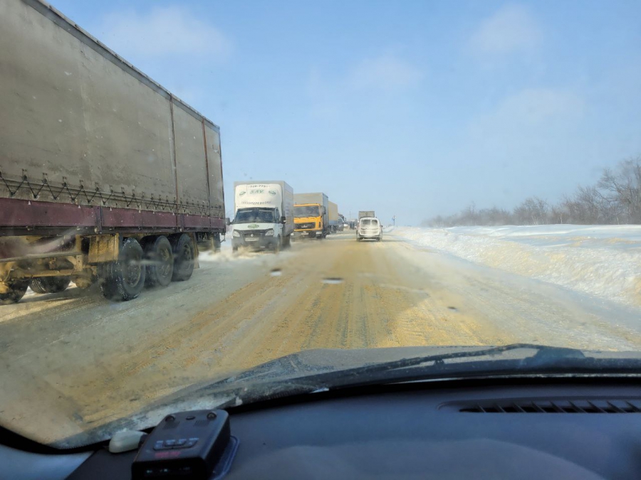 В очередной раз пришло сообщение о неудовлетворительном состоянии федеральной дороги Р-22 «Каспий» на участке от Саратова до Балашова. Дорога местами покрыта наледью, из-за чего большегрузы не могут преодолеть подъемы. Машины, скапливающиеся в низинах, заметает снегом.