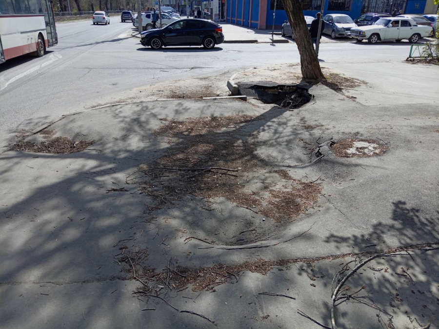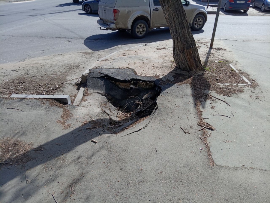 Тротуар на Астраханской уходит под землю