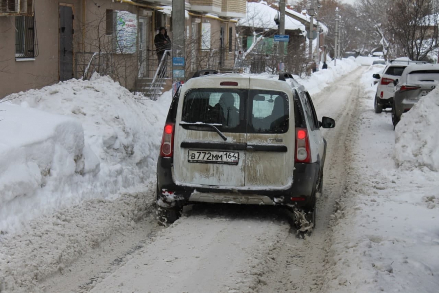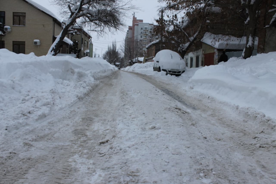 В центре Саратова улица Валовая завалена снегом, как в деревне