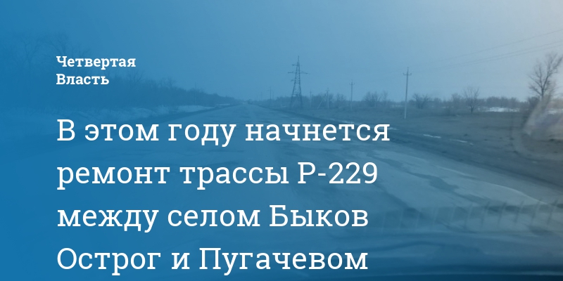 По информации федеральных дорожников из ФКУ УПРОДОР «Нижне-Волжское», на участке федеральной трассы Р-229 «Самара - Пугачев - Энгельс – Волгоград» между селом Быков Отрог и Пугачевом планируется провести капитальный ремонт с устройством четырех полос движения на указанном отрезке трассы. К реализации проекта планируется приступить уже в 2022 году, а закончить работы - в 2024-м. Восстановлены будут все конструктивные элементы дороги. Пока же подрядчику дано поручение поддерживать дорогу в проезжем состоянии».