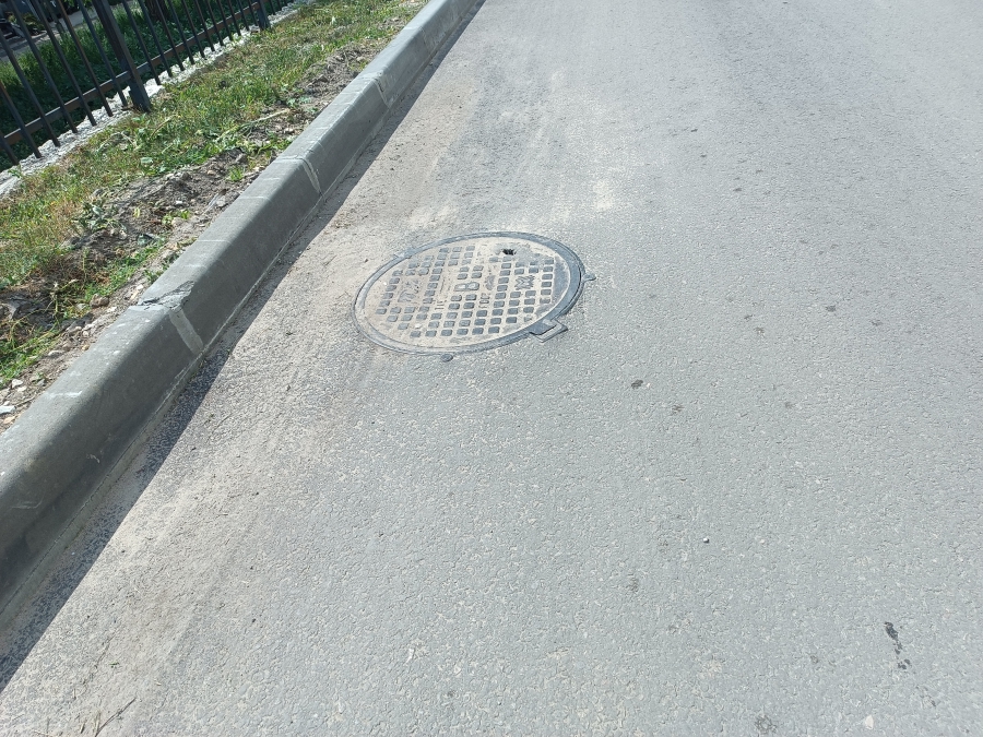 Помимо этого на парковочных карманах двора обнаружено выкрашивание асфальта, которое грозит разрушением слоя покрытия. Также на проезде с торца дома встречается люк смотрового колодца, который возвышается над поверхностью проезда, что недопустимо по нормативам. Чуть ниже него в сторону дороги по ул. Карьерной, на 20 метровом участке «забыли» провести обратную отсыпку грунтом из-за чего виднеется подбетонка бортового камня.