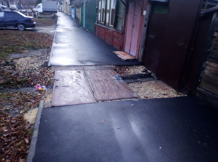 На данный момент вместо тротуара организована широкая отмостка вдоль домов, выходящих на улицу Пугачева.