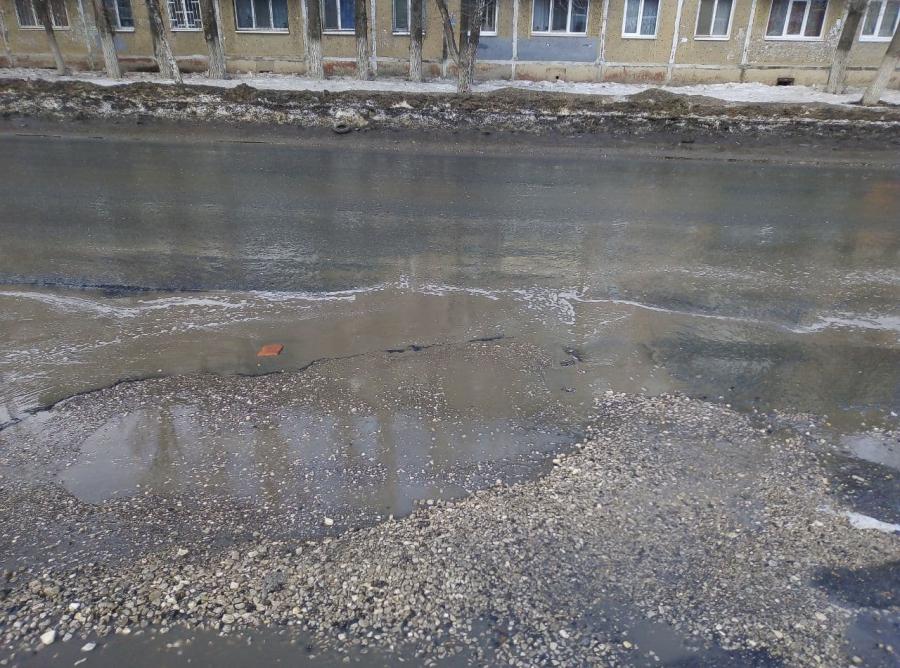 На улице Академика Антонова в Ленинском районе Саратова, рядом с остановкой общественного транспорта «Лебедева Кумача», снова появились выбоины.