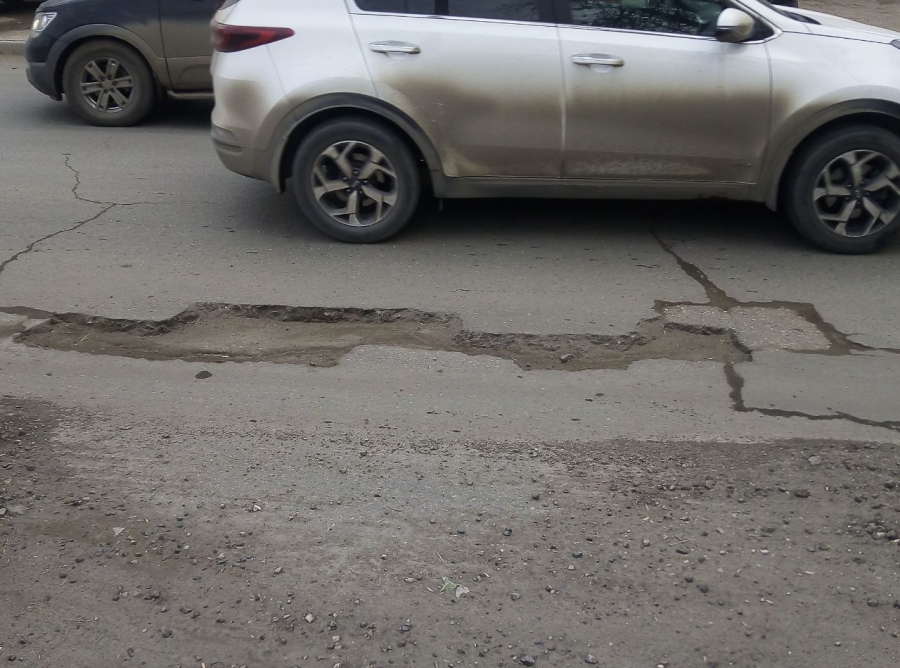 Ямы, предположительно, появились на местах латок от проведенного ямочного ремонта, которые не пережили эту зиму и полностью разрушились.