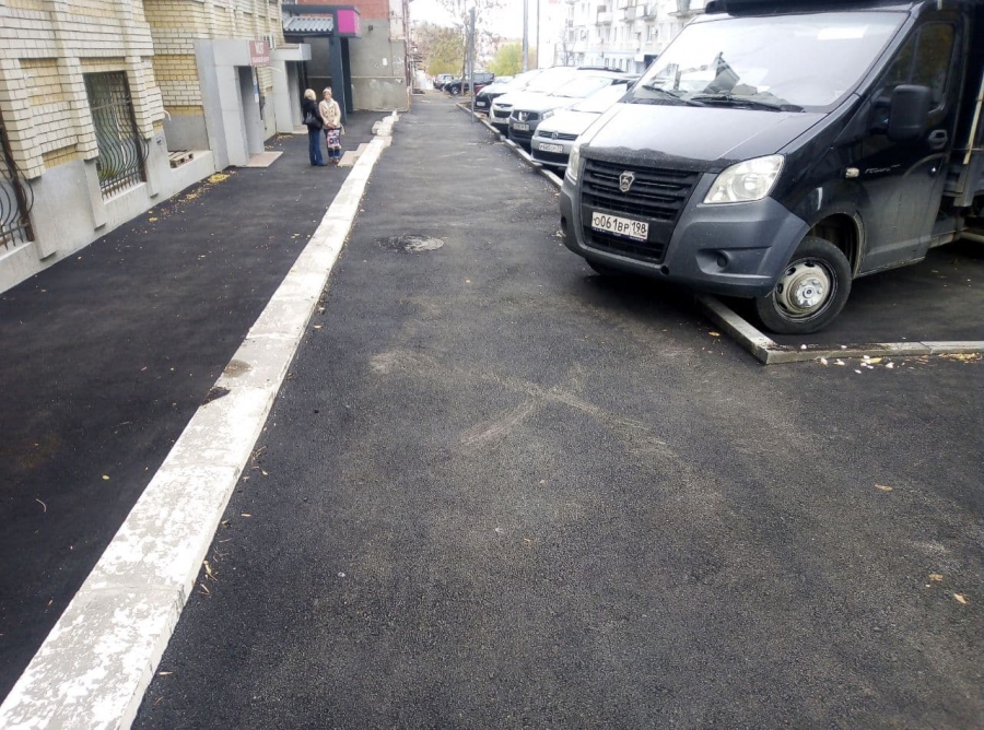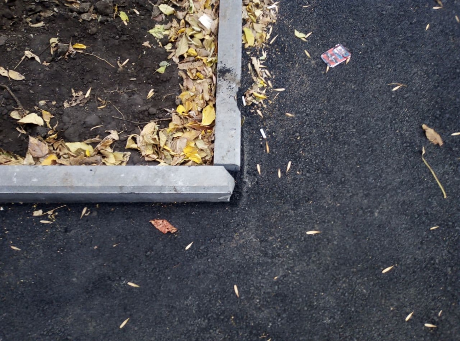 На некоторых участках под ногами уже образовалась мелкая асфальтная крошка, что ставит вопрос о достаточном уплотнении покрытия. От улицы Мичурина до Чернышевского асфальт более уплотнен, но проблемные места с выкрашиванием асфальта также присутствуют, особенно это заметно на швах сопряжения.