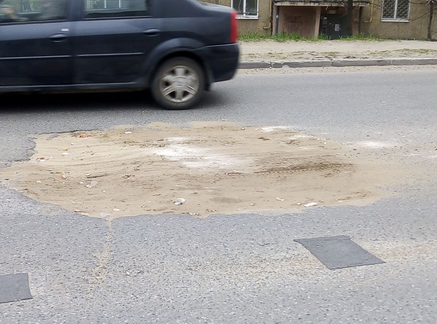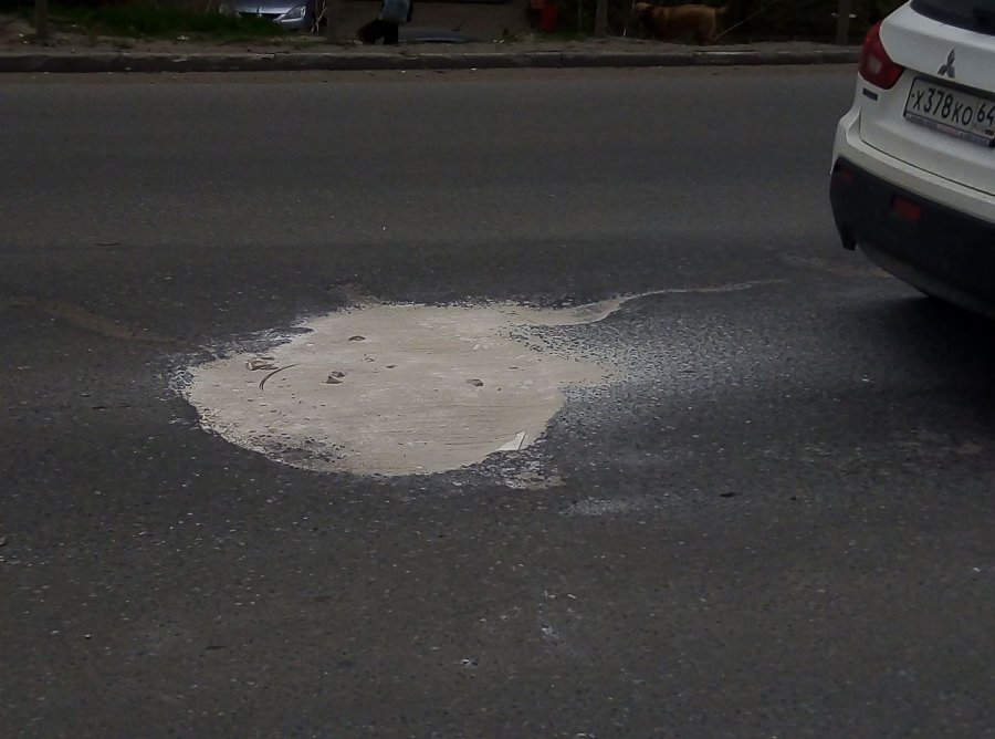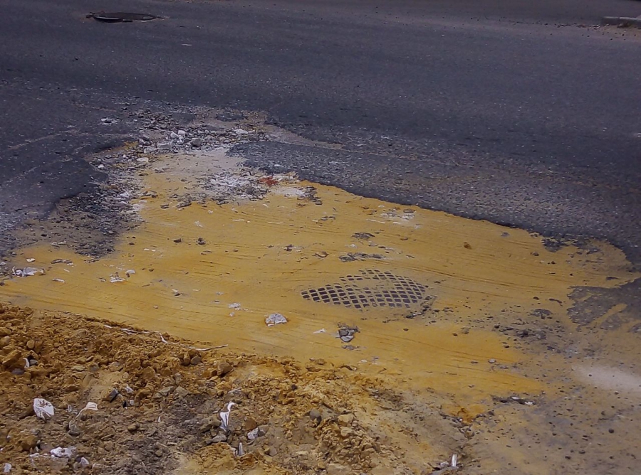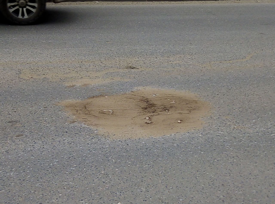 Подобный «ремонт» продержится до первого дождя, в то время как многочисленный транспорт вынужден передвигаться по этой важной магистрали с минимальной скоростью.