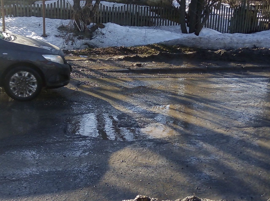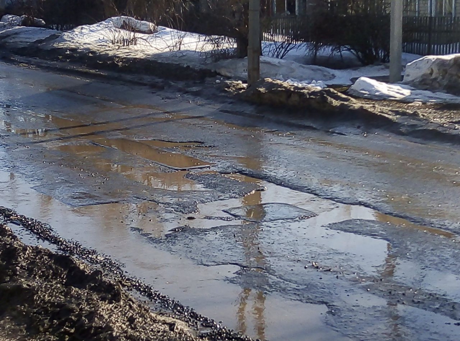 Выбоины заняли всю ширину дороги, создавая угрозу для безопасности движения.