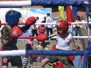 - Я пришла сюда поболеть за сына, ему 13 лет, боксом занимается год, - объясняет Елена Петрянина. - А еще видела, как люди бегут с теплоходов: быстрее, говорят, тут у них праздник… И вообще, это полезно - может, люди не знали, какие секции есть в городе, а тут столько мальчишек собралось: кто-то уже занимается борьбой, а для кого-то это очень мощная агитация! И ведь все лучше, чем дома перед компьютером сидеть. Ой, Дима пошел на ринг, мамочки, мне страшно - соперник такой здоровый… - перебивает она сама себя.