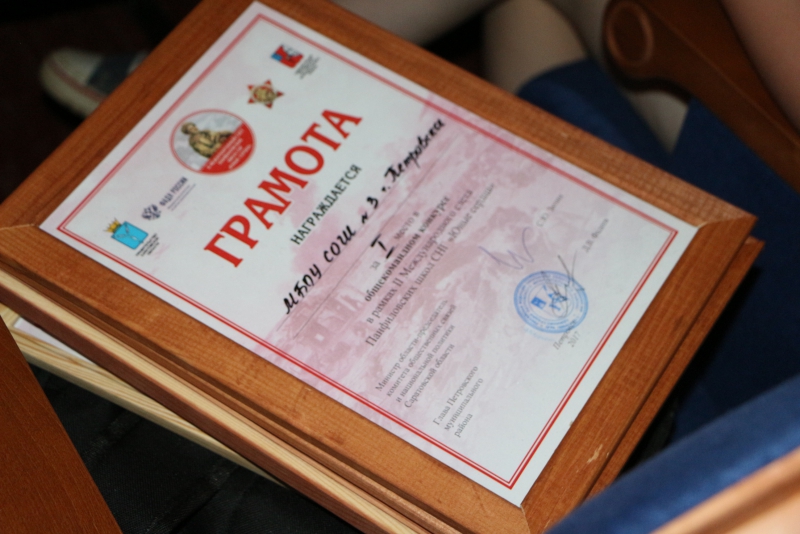 По итогам конкурса первыми оказались Валерия Стальнова (санаторная школа-интернат Петровска) и Диас Алпысбаев (Казахстанско-российская школа №54). Награды за второе место получили Ксения Горынина (школа № Петровска) и Юстина Сафонова (школа села Синодское Воскресенского района). Третье место заняли Дарья Николаева (Волоколамская школа №2), Ирина Широкова (школа №64 Саратова).
