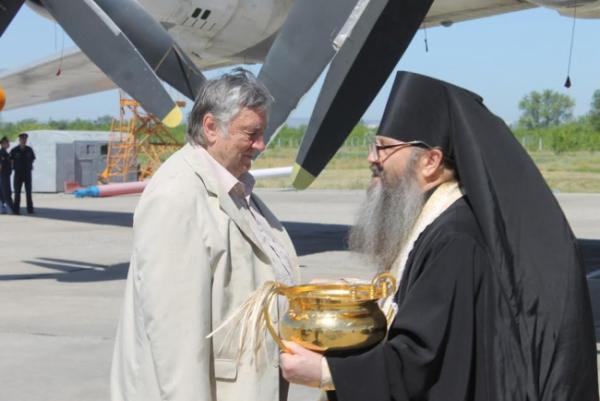 Делегацию изборцев, прилетевших на открытие Первой Поволжской книжной ярмарки, встречал местный священник, который совершил молебен с благословением и окропил святой водой гостей, летчиков, стратегический ракетоносец, а вместе с ними, получилось, и выставленную псевдоикону.