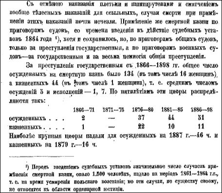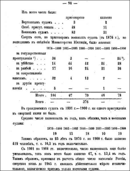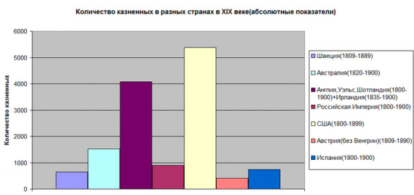 За 25 лет с 1876г. по 1900г. было казнено 419 человек, то есть по 16,5 в год. Для сравнения, в 1866-1899 гг. в США было казнено 2928 человек. В самый разгар террора в России власть также крайне либерально относилась к террористам.