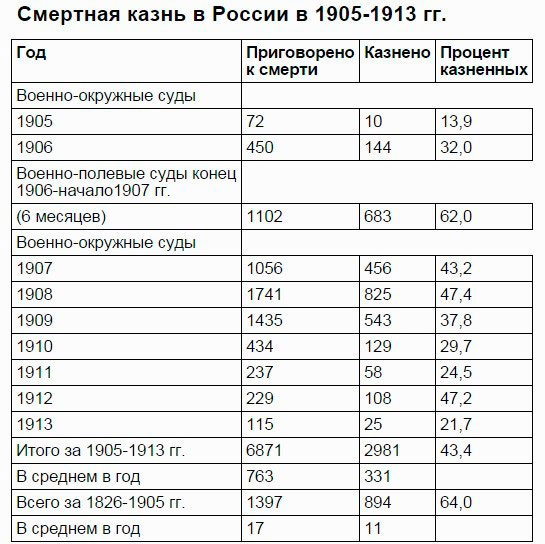 А как же на подобный террор реагировал «кровавый царизм»? Как это ни странно, Российская Империя имела одно из самых либеральных в мире уголовных законодательств. Число смертных казней, как абсолютное, так и относительное и в динамике, было самым низким в мире.