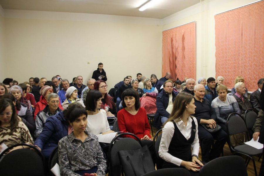 Общественные слушания, собранные властями, проходили в образовательном центре имени Марины Расковой, которой находится рядом с Домом офицеров. Под крышей здания встретились жители района, представители ветеранского сообщества, общественники и чиновники.