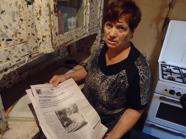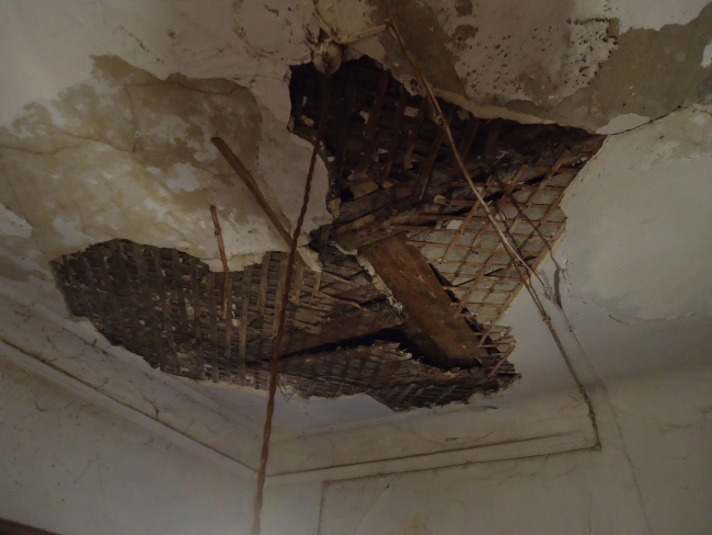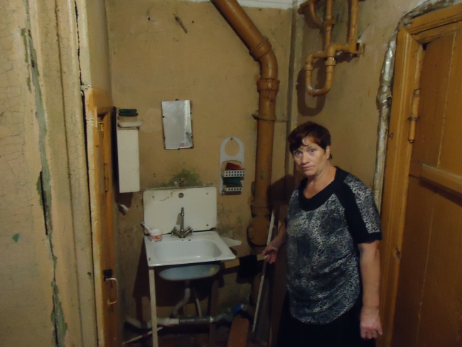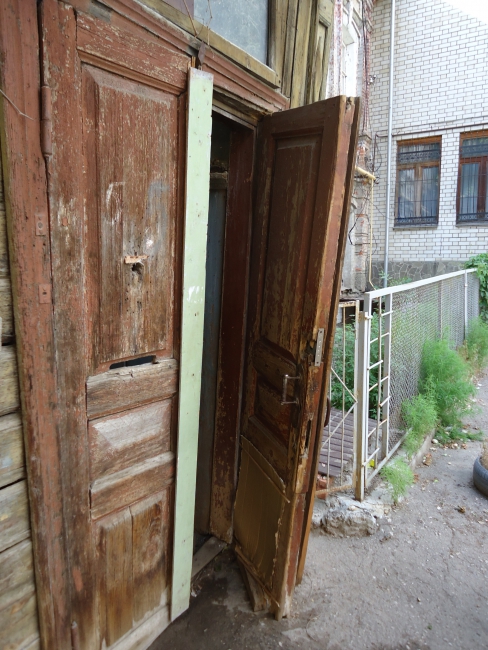 Первое, что бросается в глаза: входная дверь открывается строго на 45 градусов - дальше мешает асфальт. Изнутри помещение запирается палкой, вставленной в дверную ручку. Галина Богданова, одна из жительниц первого этажа, регулярно обращается в администрацию Саратова, однако, по ее словам, чиновники отвечают, что подобных заявлений на отселение из ветхого жилья у них более 800. Тем временем состояние потолков в кухне на первом этаже немногим отличается от того, что можно увидеть в общем коридоре. В марте этого года на голову пенсионерки упал тяжелый кусок штукатурки. Тогда дело закончилось госпитализацией Галины Васильевны в 1-ю Советскую больницу, сотрясением головного мозга и сломанной рукой.