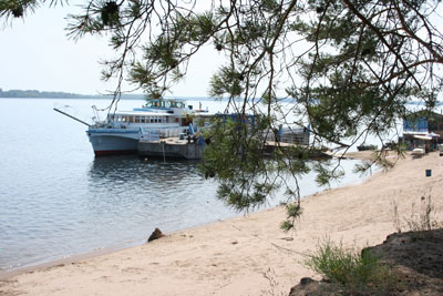 На острове возле дебаркадера в сосновом бору – хорошее место для кемпинга или пикника. На дебаркадере можно взять напрокат мангал. Разумеется, ставить его в лесополосе запрещается – шашлыки жарят на пляже. Здесь же, возле дебаркадера, стоит маленькое летнее кафе, можно купить сушеную и копченую рыбу, раков. Можно взять напрокат лодку или катамаранчик. Для тех, кто ценит небольшие, но важные бытовые удобства: на теплоходе, который стоит у причала весь день, есть туалет.