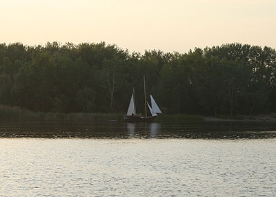 В старину главными трассами были реки. В постперестроечное время 90-х речной транспорт пришел в упадок. Но в последнее время он стал возрождаться, и отдых на катерах и теплоходах становится вновь привлекательным. Путешествие по воде – это наслаждение видами зеленых берегов, в любую жару прохладным воздухом и ни с чем не сравнимое чувство покоя: на Волге нет пробок, а лихачи на водяных мотоциклах вызывают только улыбку. Одним словом, три часа пути в одну сторону оказались приятной увертюрой. Маршрут проходил по самым живописным окрестностям Саратова: мимо Зеленого острова, под старым городским автомобильным мостом и новым, пристанским. Мимо Усть-Курдюма, теряющейся в дымке Усть-Курдюмской бухты – к островам в широком разливе Волгоградского водохранилища.