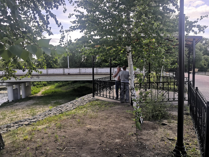 Посмотрел Рогожин и состояние благоустроенной территории на Медведице в центре города, а также отремонтированный железный мост, который уже давно является историческим объектом и достопримечательностью Петровска. На обширной территории создан пляж и красивые лежаки с навесами, концертная площадка. На верхнем ярусе разбиты цветники, у входа на мост поставлены декоративные пушки и скамейки. На другой стороне реки через мост разбит сквер со скамейками и беседкой типа ротонды. Депутат отметил, что этот многострадальный объект (только Вячеслав Володин его лично инспектировал три раза с последующими оргвыводами за срыв сроков и бардак) стал красой города, такого нет во многих малых городах. Этот уголок непременно станет новой достопримечательностью.