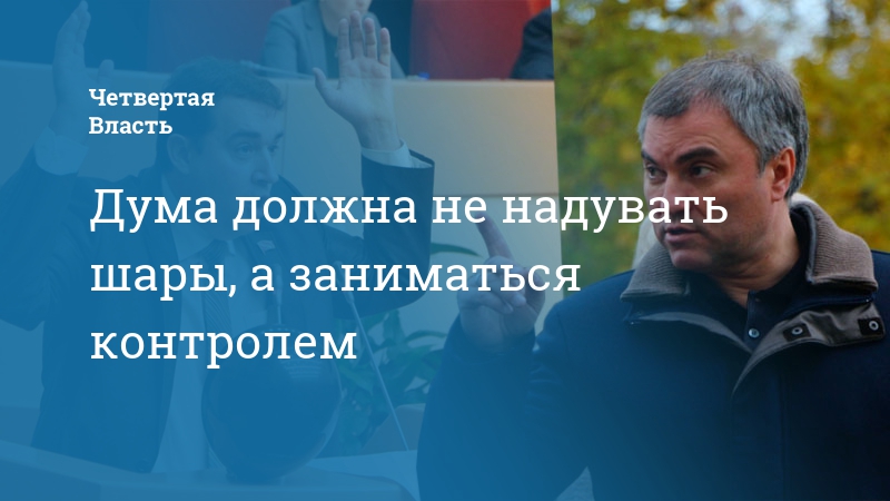 Òàê ñîâïàëî, ÷òî íåñêîëüêèìè ÷àñàìè ðàíüøå áûëî îïóáëèêîâàíî ìîå îáðàùåíèå ê äåïóòàòàì âñåõ óðîâíåé î íåîáõîäèìîñòè ñîçäàíèÿ ïàðëàìåíòñêîãî êîíòðîëÿ (ñ íèì, óâû, ÿ íå ñìîã âûñòóïèòü íà ñîâåùàíèè â äóìå – òàì ãîâîðèëè î äðóãîì). ß çíàþ äàâíî, ÷òî ýòî ïðèîðèòåòíîå íàïðàâëåíèå Âîëîäèíà, î ÷åì îí åùå ðàç íàïîìíèë â÷åðà, óïðåêíóâ äåïóòàòîâ äóìû â ñîòðÿñàíèè âîçäóõà, ïóñòîïîðîæíèõ çàÿâëåíèÿõ è â ýêñêóðñèÿõ íà ñòðîÿùèéñÿ àýðîïîðò «Ãàãàðèí».