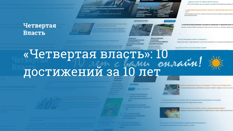 Исполнилось 10 лет с того момента, как началось издание интернет-газеты «Четвертая власть». 10 лет, казалось бы, - небольшой срок. Но сколько событий случилось в «4В», сколько было пережито, переосмыслено! В наши времена немногие СМИ дотягивают до десятилетия. Здесь особенно приятно отметить, что наше издание делалось как независимое от власти и от кого бы то ни было. С маленьким материальным и трудовым ресурсом нашей команде удалось с нуля создать информационный продукт, который входит в плеяду крупнейших, влиятельных, популярных интернет-СМИ Саратовской области.