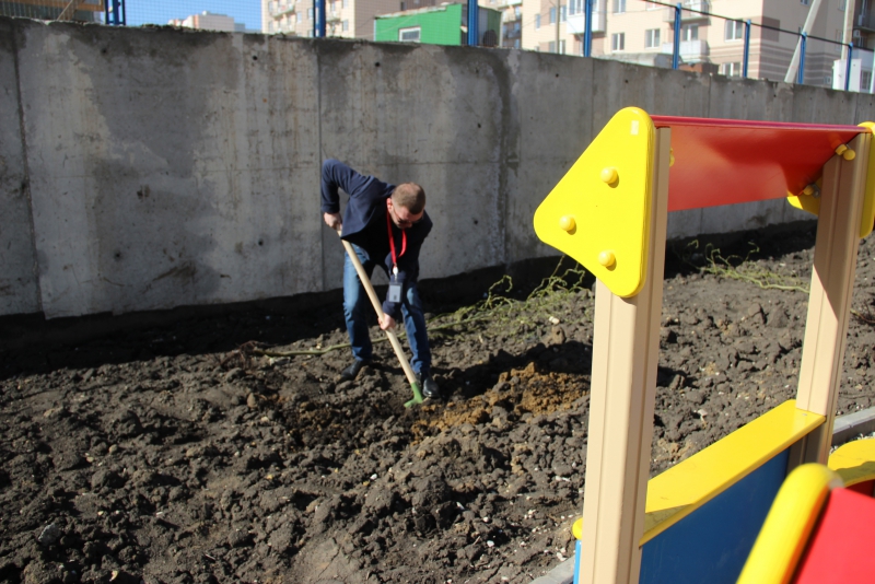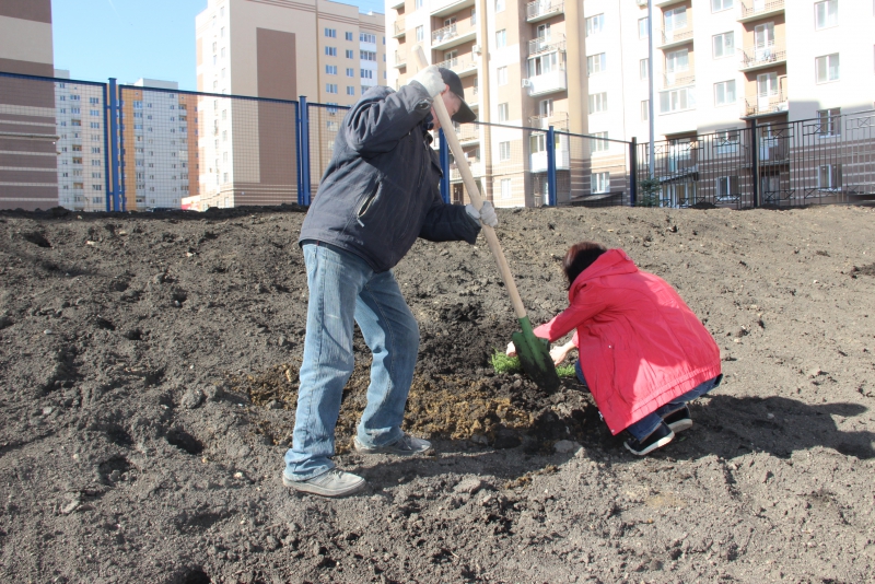 Сотрудники близлежащих магазинов с радостью взялись за лопаты. Вместе с руководством школы они размечали места высадки побегов, следили, чтобы они располагались симметрично и красиво. После чего выкапывали ямки, куда помещали саженцы.