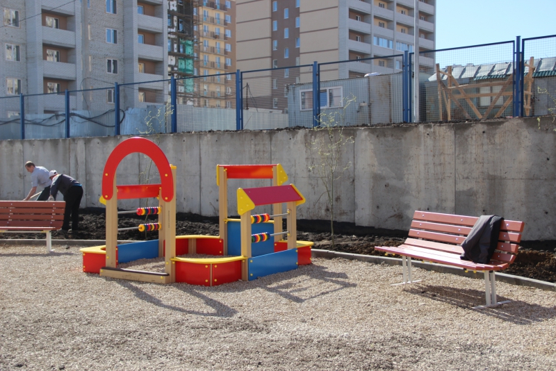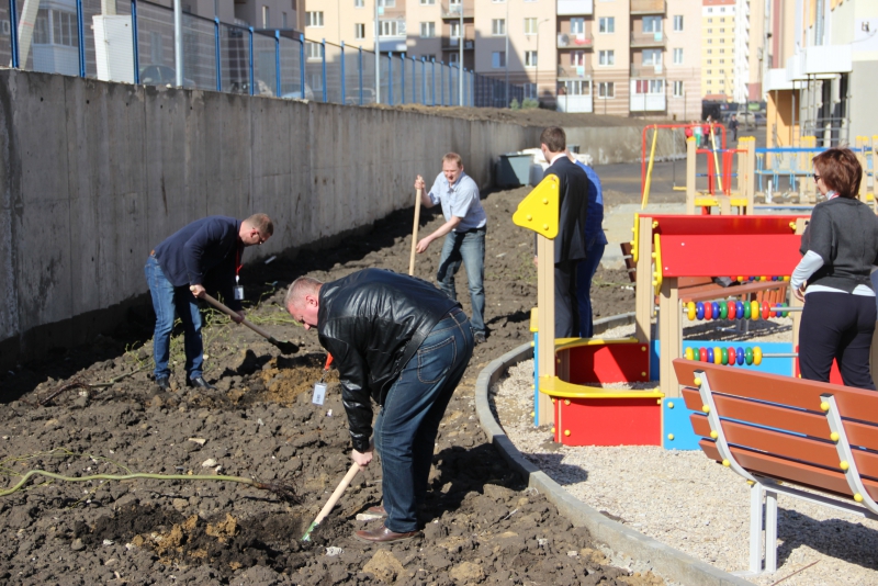 Ивовые деревья, посаженные вокруг детской игровой площадки, будут создавать на ней тень, под ними ребята будут отдыхать после уроков. На склоне, расположенном неподалеку от входа в «Солярис», будут виться зеленые лапы можжевельника. Игровую площадку теперь обрамляют молодые саженцы липы.