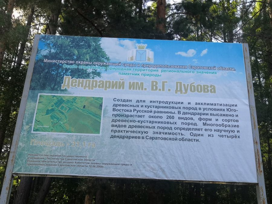 В сентябре же для выделения в условиях местности на фасадной части природного памятника разместили новый информационный баннер «Дендрарий В.Г. Дубова», планировался частичный ремонт ограждения. На будущий год здесь также установят противопожарный аншлаг, шлагбаум, займутся лесной дорогой по периметру дендрария, обновят 2,2 км противопожарной минерализированной полосы.