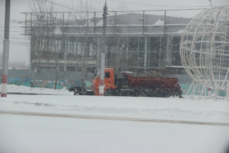 Неподалеку от Лесозаводской мы увидели, как двое дворников с лопатой уже кидали в грузовик снег. И здесь же мимо нас проехали три автомобиля, посыпавшие дороги песком.