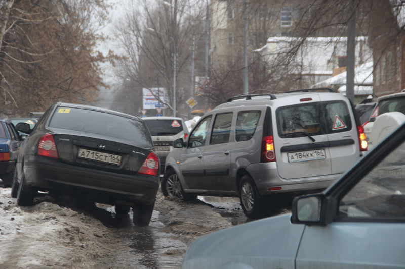 Когда же мы через час вернулись в Саратов, то застали тут привычную картину заброшенного города: заснеженные и сильно зауженные «деревенские» дороги (и это в центре!), 8-балльные пробки и многочисленные мелкие ДТП. Где в настоящее время обитают все эти двести единиц снегоуборочной техники и тысячи дворников, о которых мэрия так много говорит, непонятно. Может быть, они все отправились в соседний Энгельс?